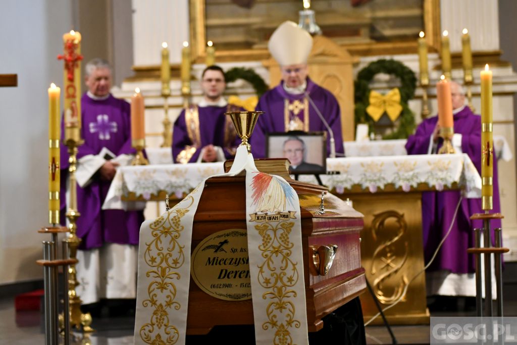 W poniedziałek 20.02.2023 r. odbył się pogrzeb śp. ks. prałata Mieczysława Derenia. Uroczystości rozpoczęły się Mszą św. pod przewodnictwem bp. Tadeusza Lityńskiego w naszej parafii, a zakończyły na cmentarzu komunalnym. Zmarłego Kapłana polecajmy Miłosierdziu Bożemu.