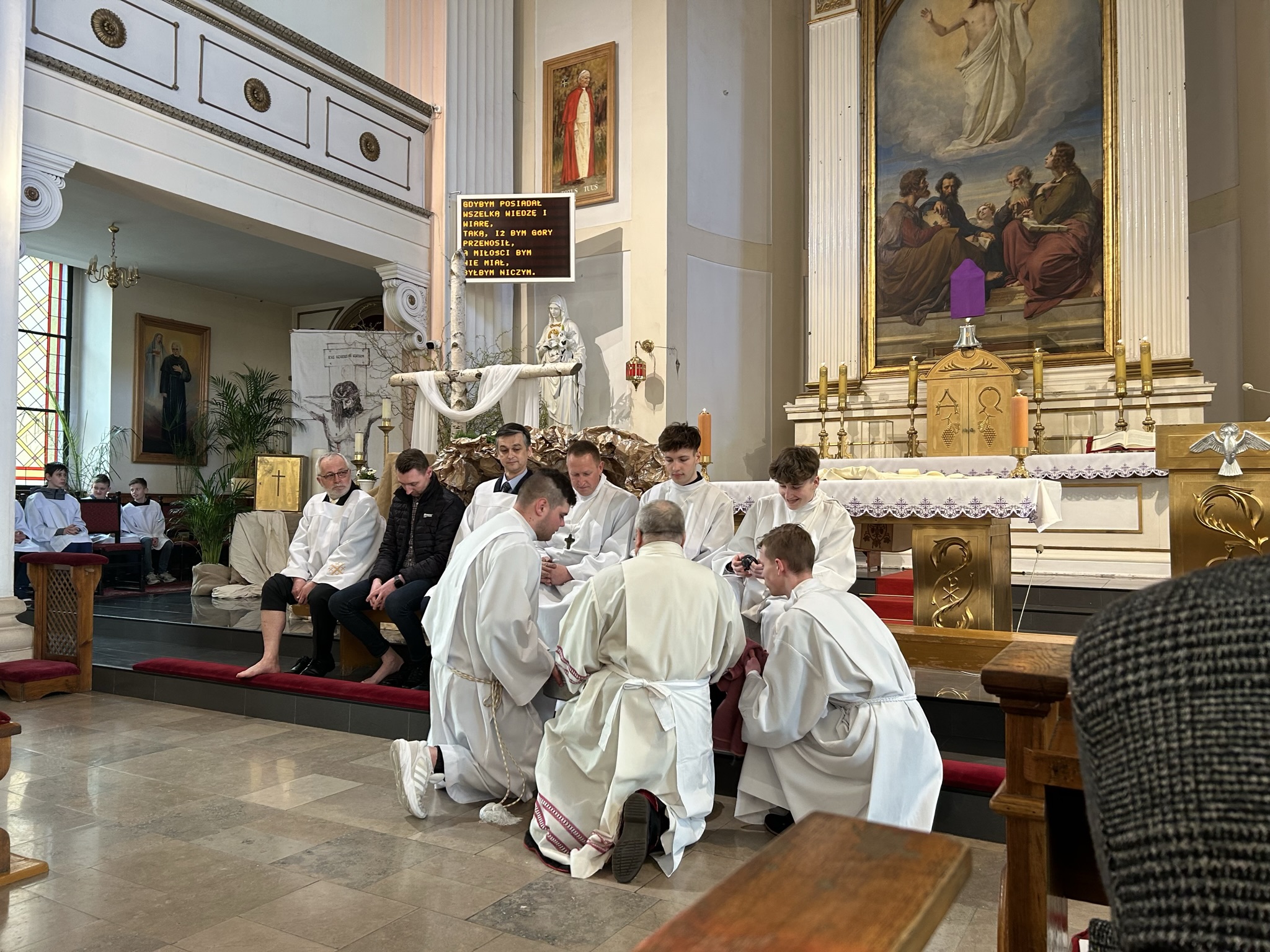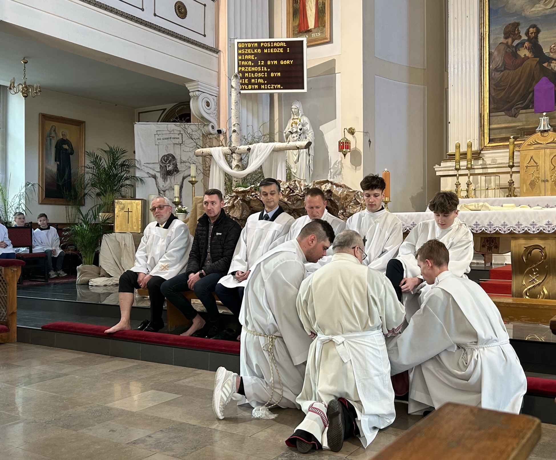 Wielki Czwartek to dzień, w którym Jezus Chrystus podczas Ostatniej Wieczerzy ustanowił sakrament Eucharystii i sakrament Kapłaństwa. W tym dniu nasze myśli i życzenia kierujemy w stronę wszystkich kapłanów, a zwłaszcza kapłanów pracujących w naszej parafii.