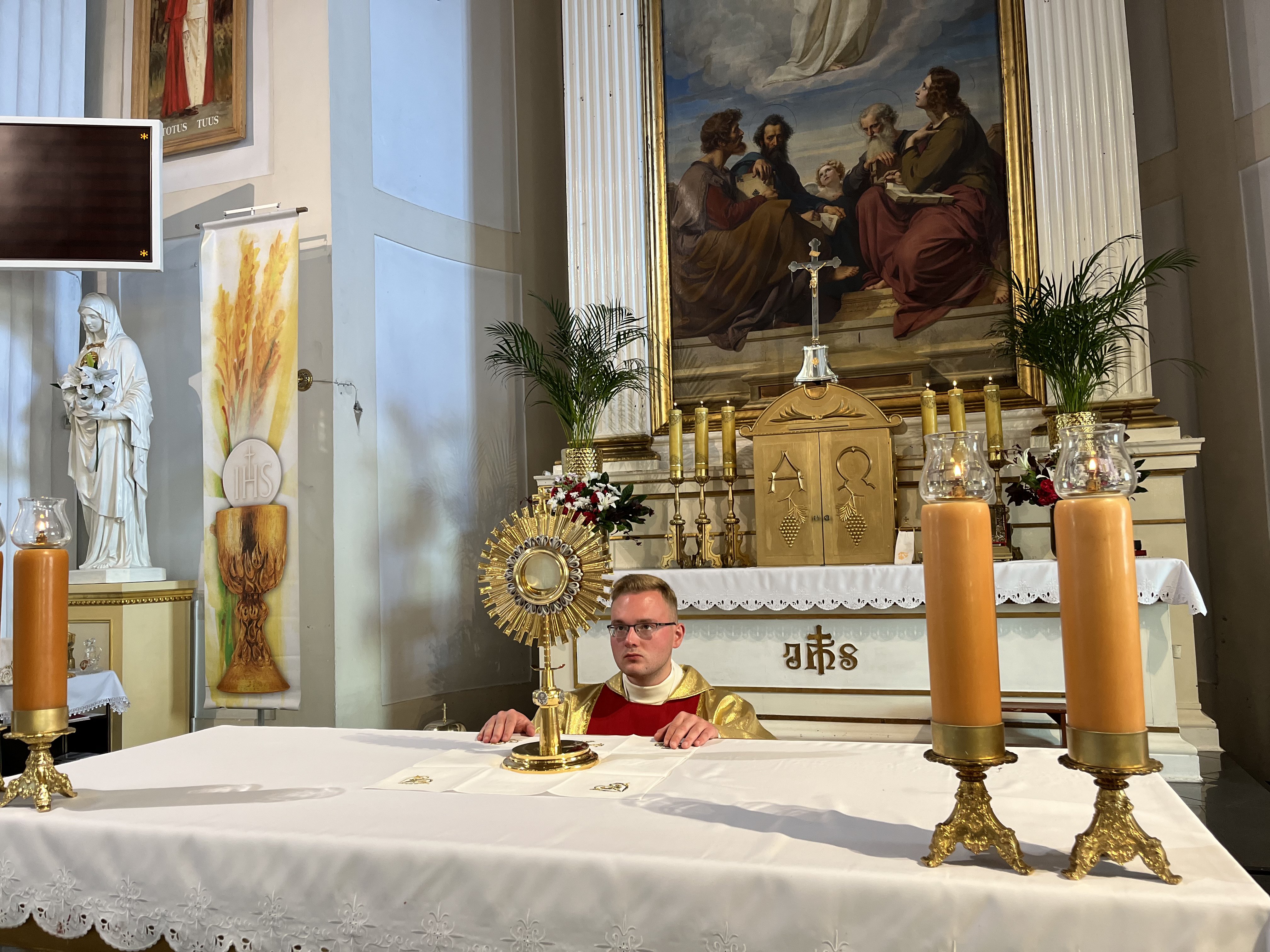 30 maja o godz. 9:00 rozpoczęliśmy Mszę świętą w uroczystość Najświętszego Ciała i Krwi Chrystusa. Eucharystii przewodniczył neoprezbiter ks. Michał Kowalewski.